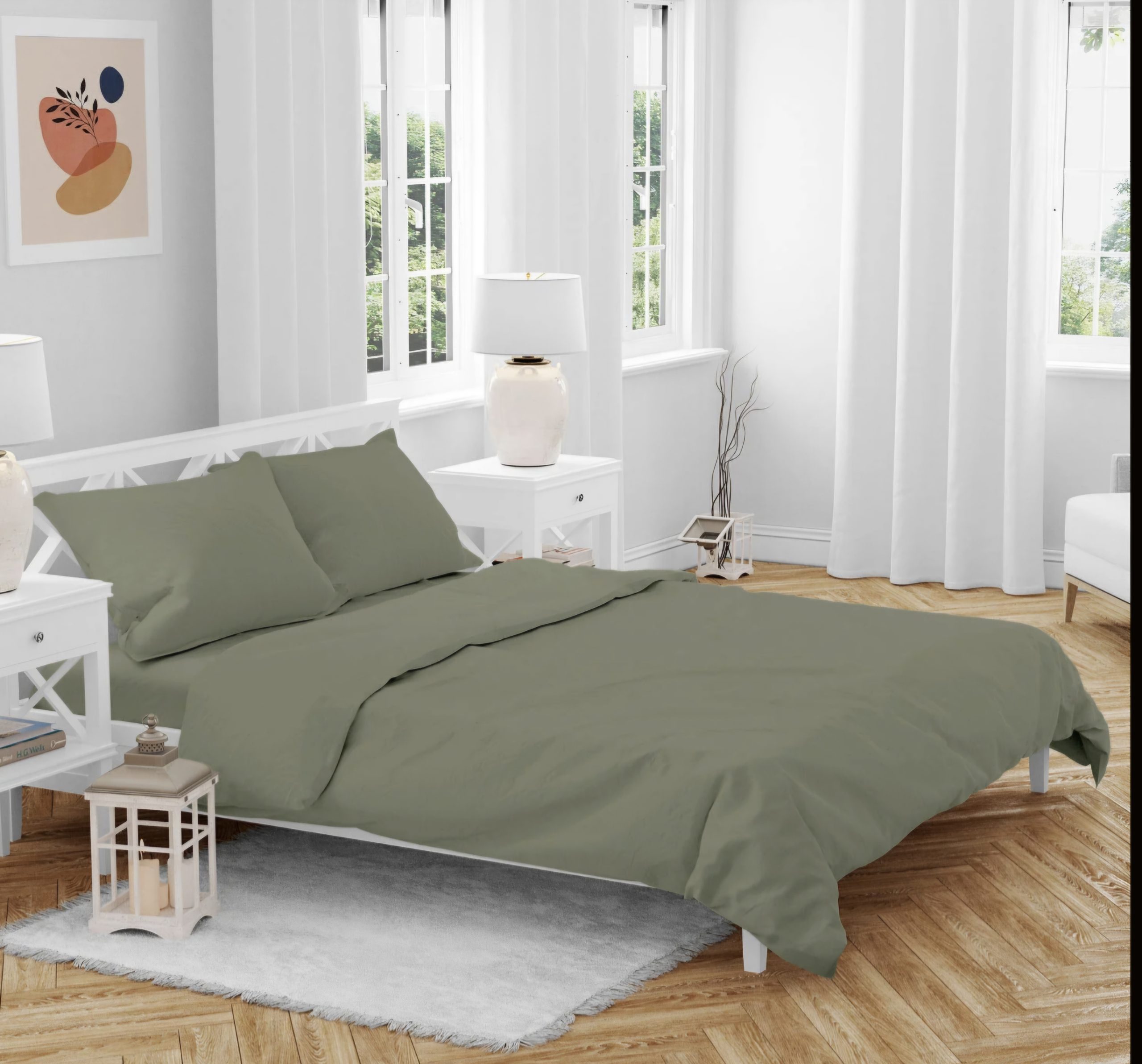 סט מצעי ג'רסי פרימיום 100% כותנה יבוא מהודו ירוק זית